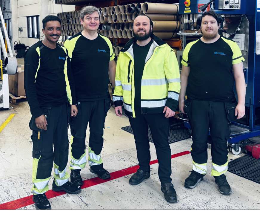 Photo: Angosom Dagnew, Aleksander Sikorski, Benjamin Lokaj, Vemund Pedersen, Vemund is an operator and machine operator.